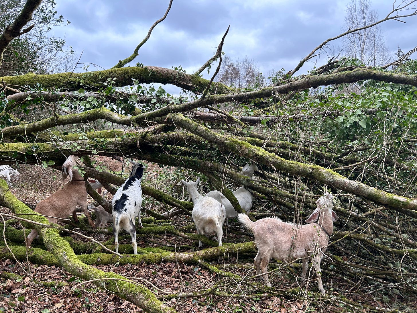 I strip bark from the fallen oak with a heavy, double-handled blade I bought handmade from Hammarede for fleshing animal skins, much too heavy and sharp for its original purpose but perfect for stripping tree skins. The oak fell late last winter, in storm Eowyn. Its taproot cracked, the tree tore from the rocks it stood on, but still anchored to the earth beneath by strong lateral roots it leafed up in spring and sent up brave new shoots and our goats feasted on bitter oak leaves offered at browse height from the fallen giant. We let it lay all summer, feeding the goats and the multitude of life an oak, even a fallen one, feeds, before we began to harvest bark for tanning and timber that will feed our home fires for years