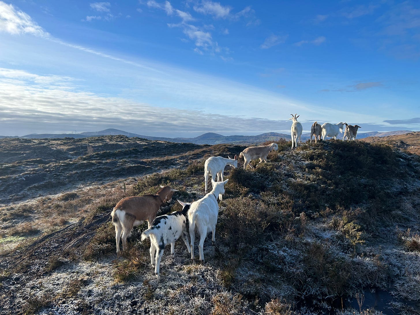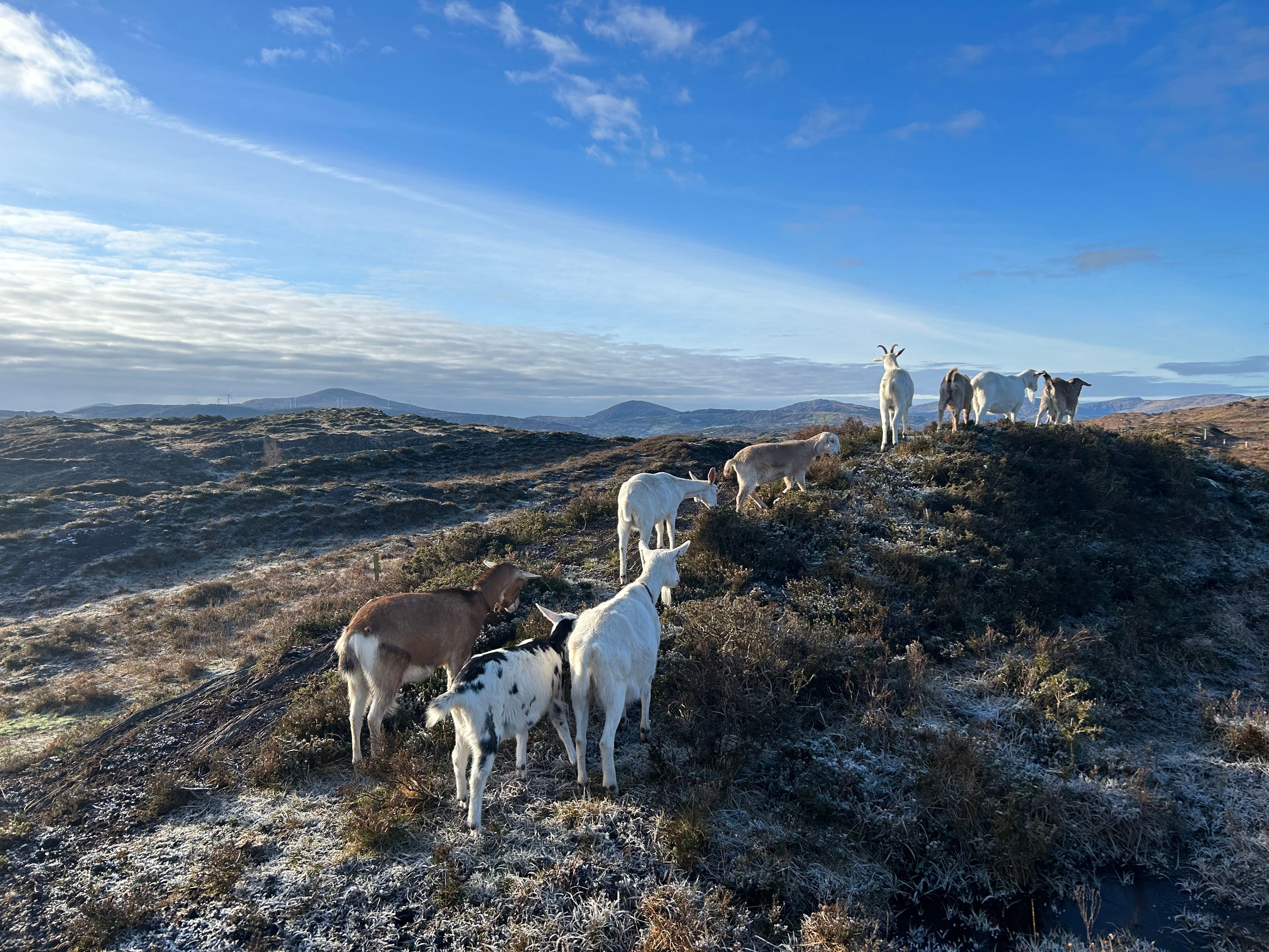 Our little farm sits on the edge of the Cork and Kerry Border Mountains, Cork side, but not too far from the Kerry border which runs along the mountain ridge. It is split between two small parcels of land just under three miles apart, at about 200 metres elevation. The highest peaks in the Cork and Kerry Border Mountains are 600 to 700 metres, so you could say we’re just less than a third of the way up. These hills are not high, but they are rugged, exposed, and wet.