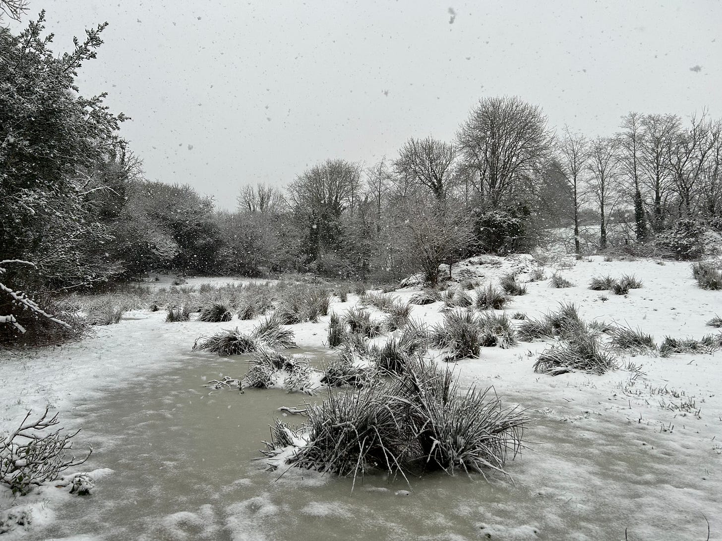 In winter, our lowest fields are under water, and our Hill is a wetland of flooded bogs, wet heaths and waterfalls. Besides a few hardy hill sheep of the Scotch type that thrive on heather and rain dotted across the hills, hoofed animals are generally housed through winter in this part of the world to save the soil from poaching. There is no grass growth in winter, hay must be fed, and it’s usually better fed on dry standing indoors because there won’t be any grass growth in spring either if the fields are churned to mud by heavy hooves in winter. Our sheep and our goats are all snug in their barns with their feeders and their bellies full of sweet summer hay and it is snowing outside as I write, in big, wet dollops that melt as soon as they touch the ground, turning the mud to slush.